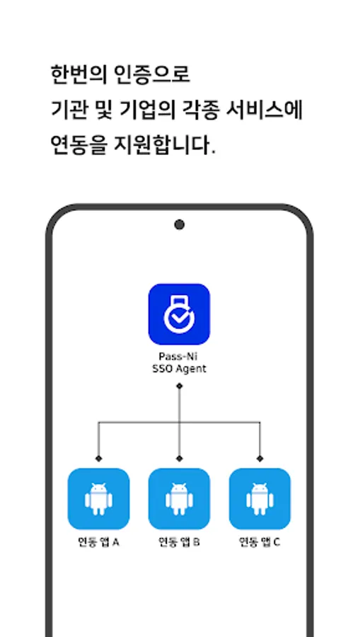 Pass-Ni SSO Agent is a service that safely and easily authenticates user organizations' service login and other tasks, and supports integrated authentication (SSO) so that users can access various mobile apps and web applications with one authentication.