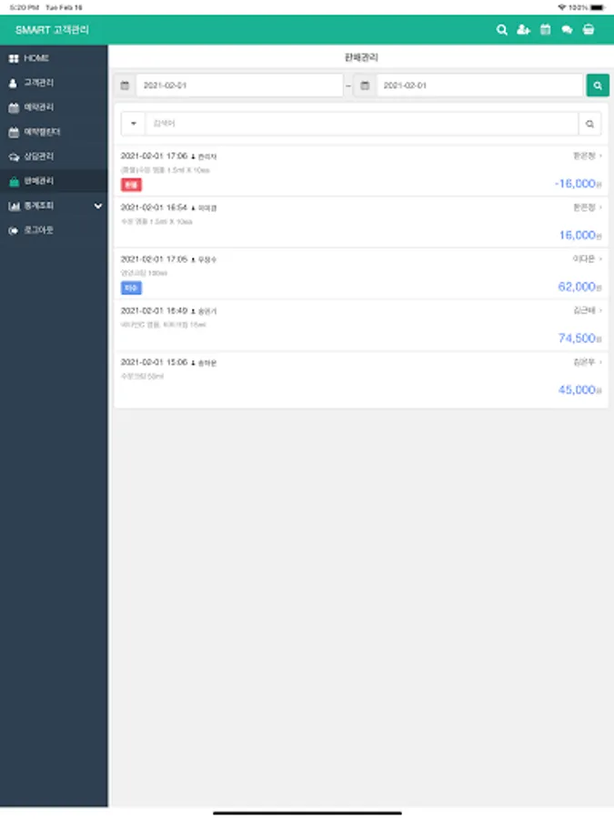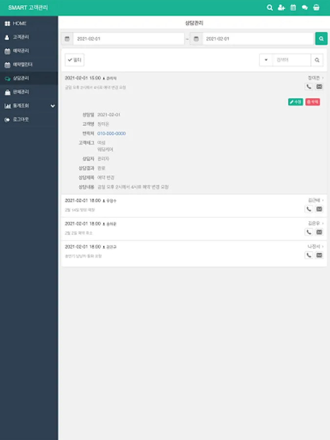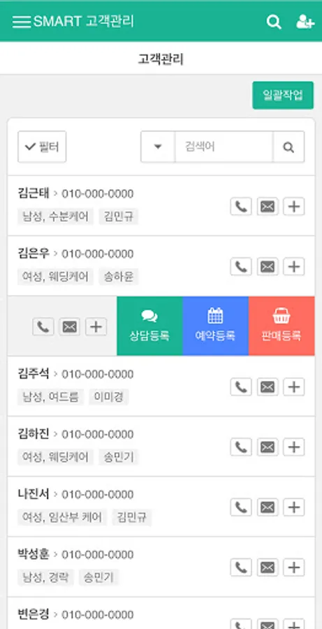 You can check and manage customer history (reservation, consultation, sales) at a glance.