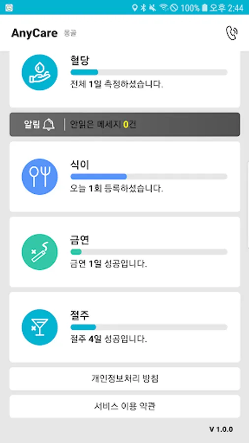It records and manages the user's daily physical activity, health measurement, and lifestyle, registers photos of meals or unusual situations, and helps in returning to daily life and managing health through communication with a professional coordinator.