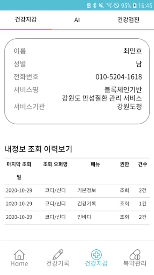 This service is an application for users of the blockchain-based Gangwon-do chronic disease integrated management platform.