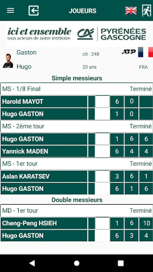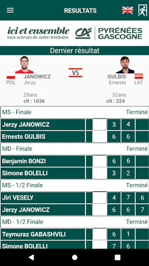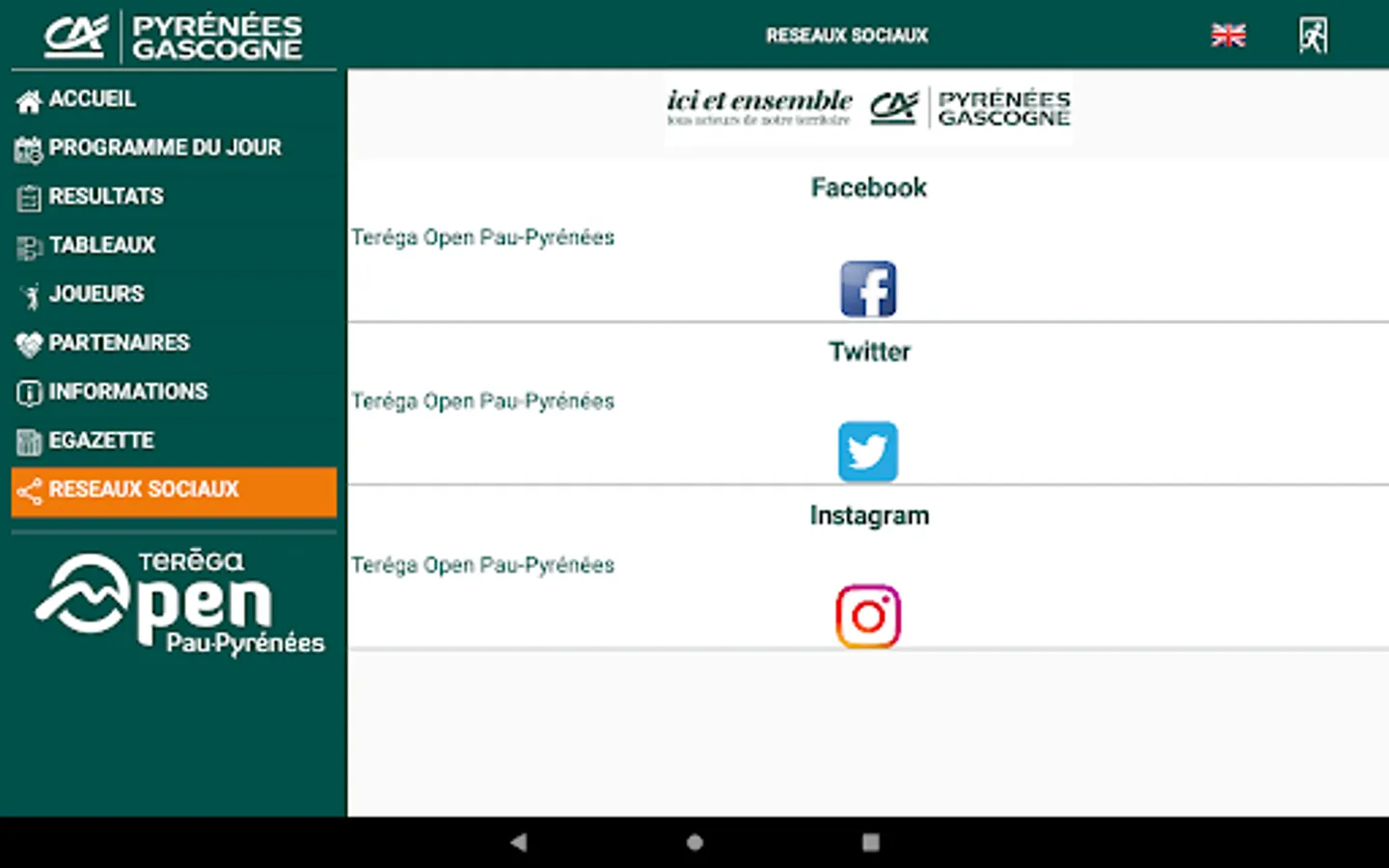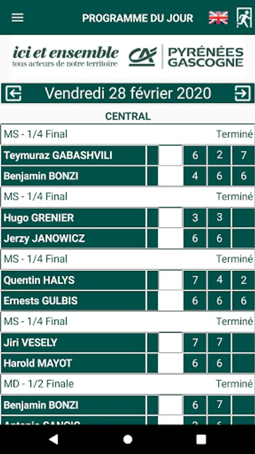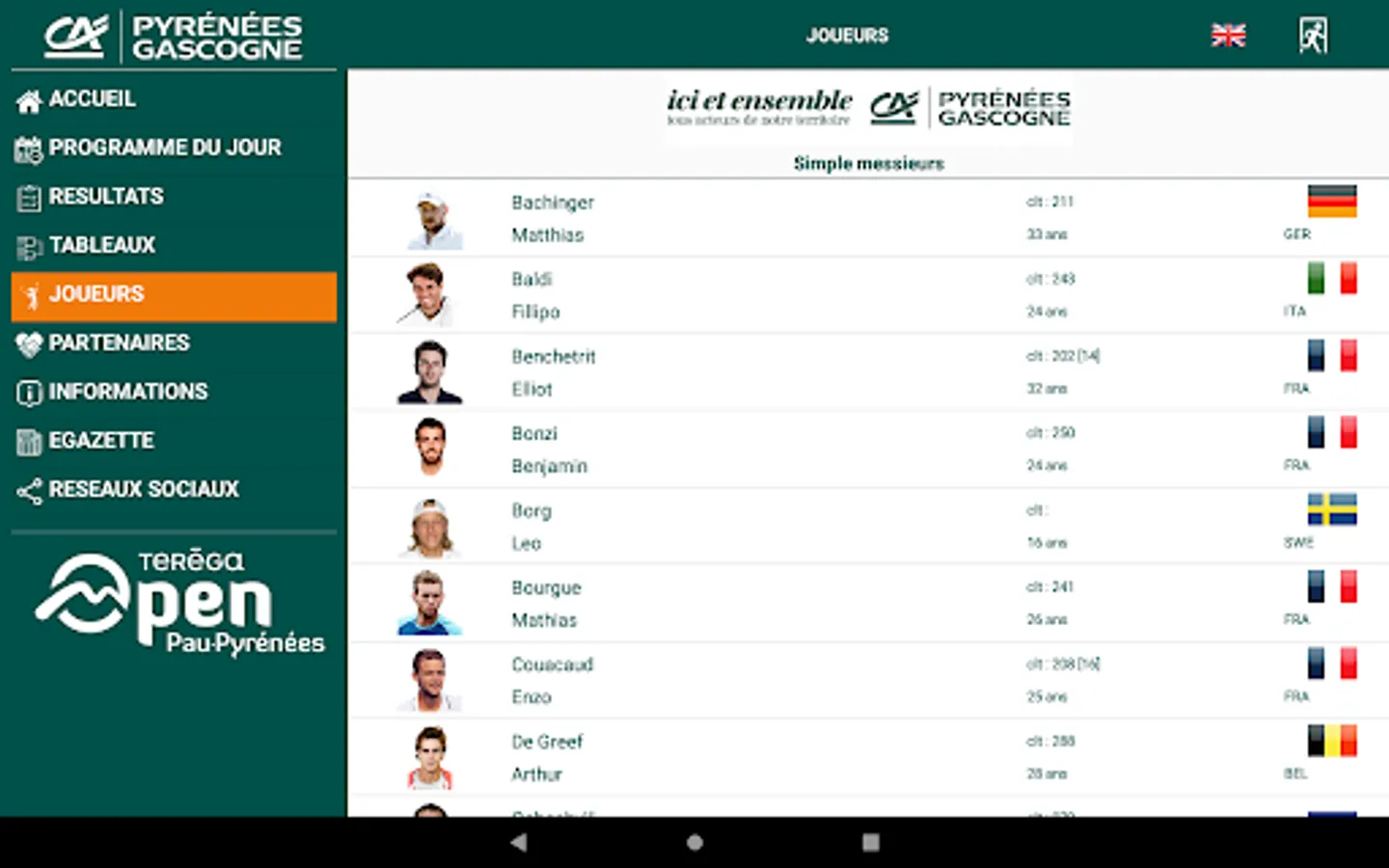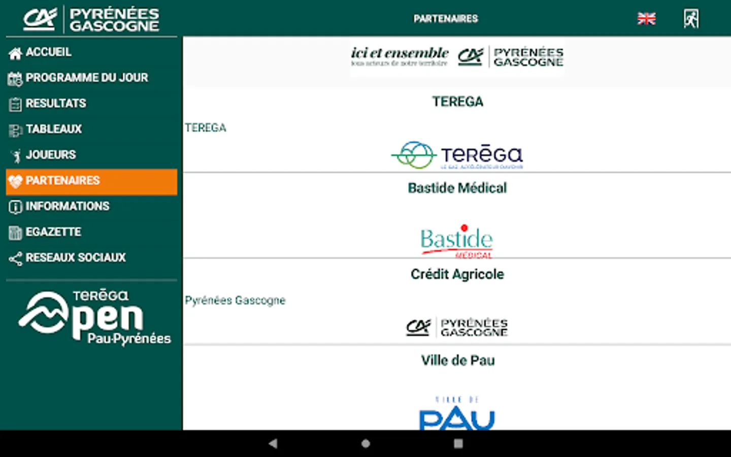 topp is an application developed in collaboration with Crédit Agricole Pau Pyrénnées. All the results, the tables as well as the program of the day of the challenger Téréga Open Pau-Pyrénées are there. You will find the list of partners, useful information as well as a daily game.