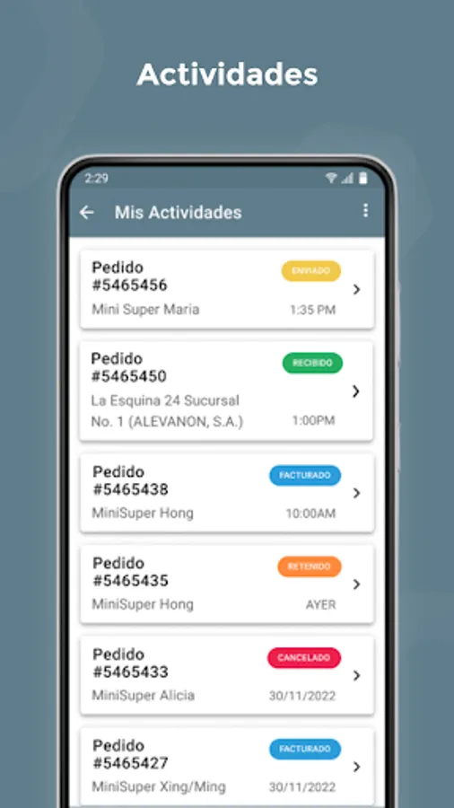 Application for an employee of a wholesale company, from the street, to capture all the activities carried out immediately in front of the client.