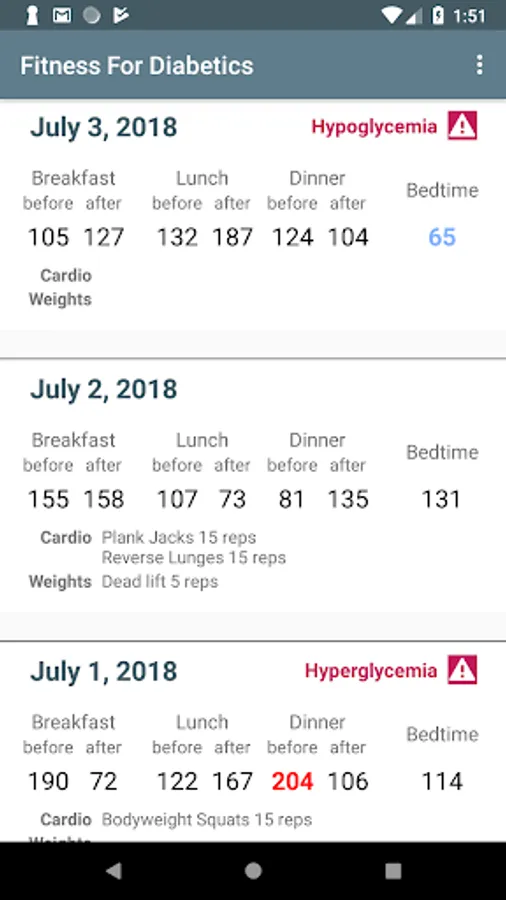 For diabetic persons, keeping track of their blood sugar levels (glycemia) is paramount. Besides the diet, physical activity also plays a major role in altering the glycemic values. With this app diabetic persons can log their blood sugars levels throughout the day and complement this information with any workouts done on that particular day. The app also has access to an online database with the glycemic index of common foods and a chart outlining the glycemic trends of the last few weeks.