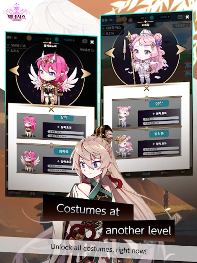 - Convenient growth with items obtained through a variety of idle game-play statuses.