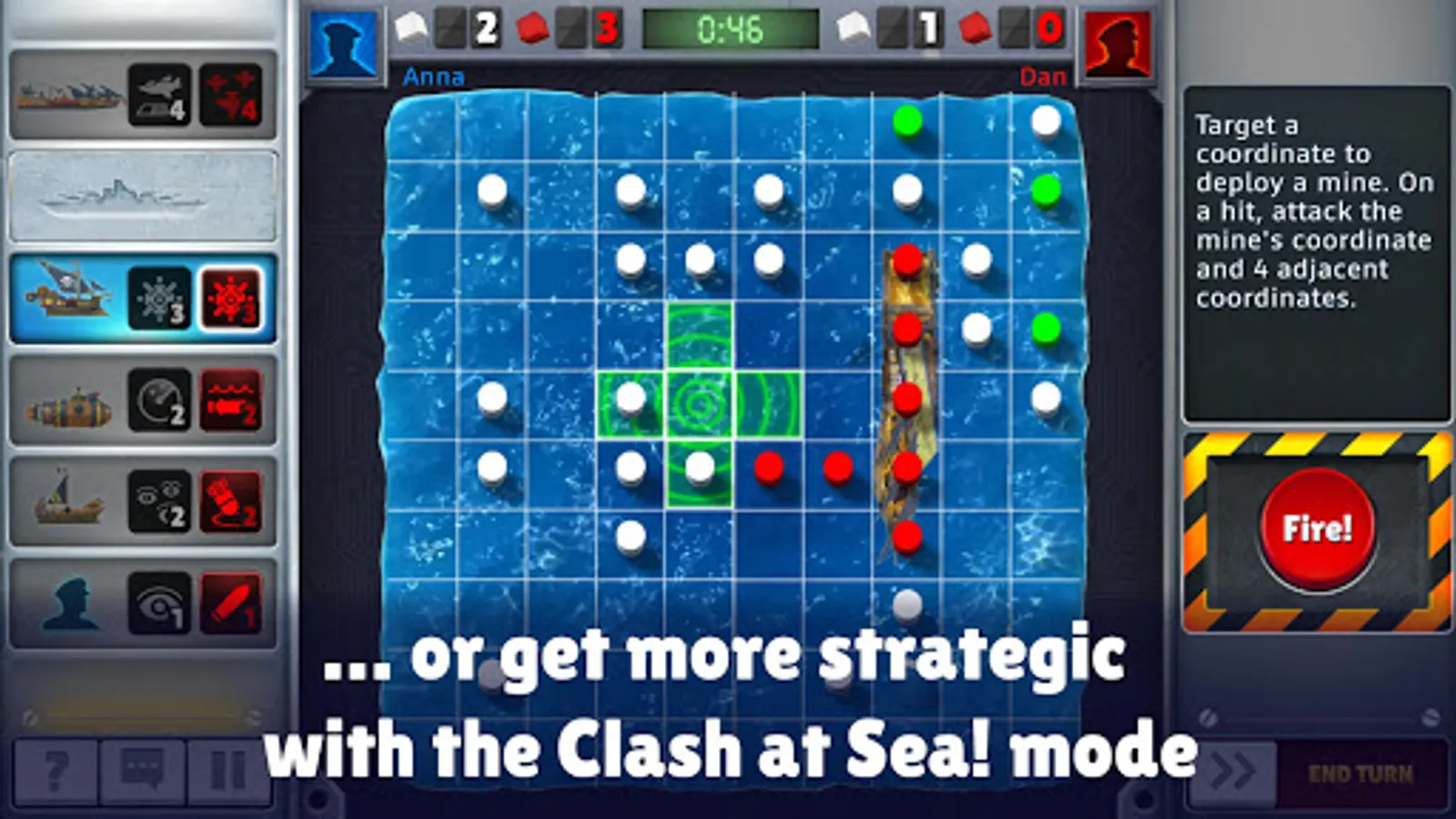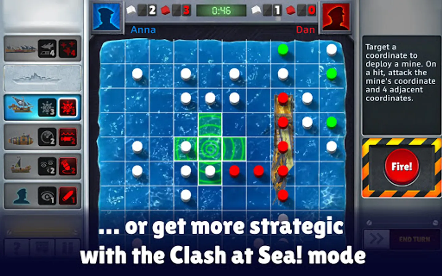 With a modern, dynamic and interactive board, enjoy the game you know and love in the Classic mode or get more tactical in a brand new way to play: the Clash at Sea! mode.