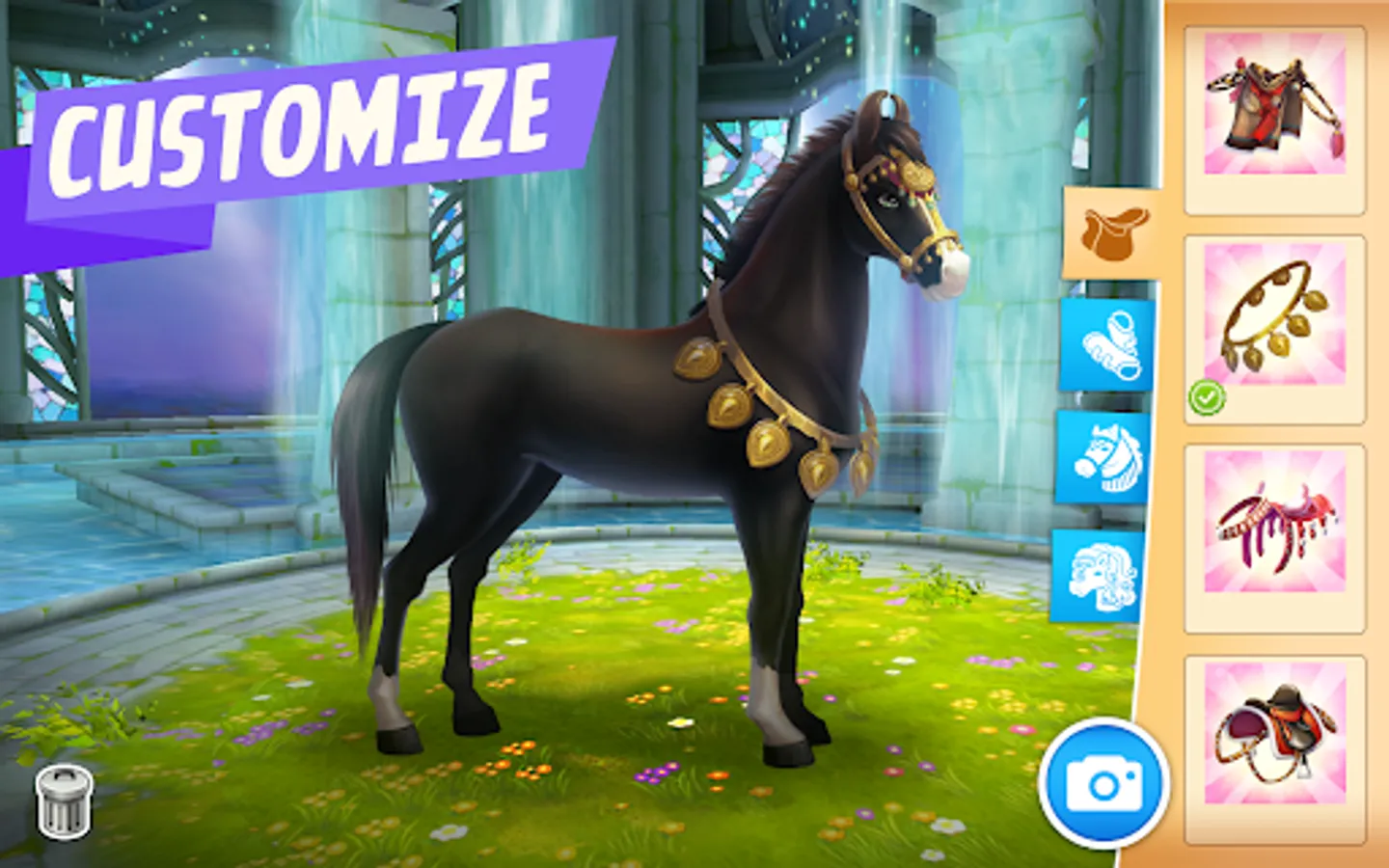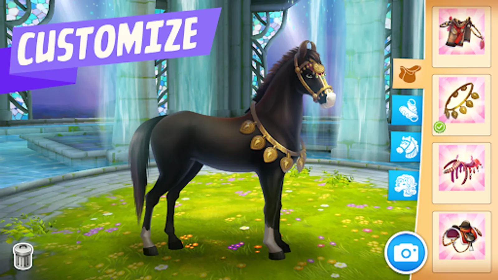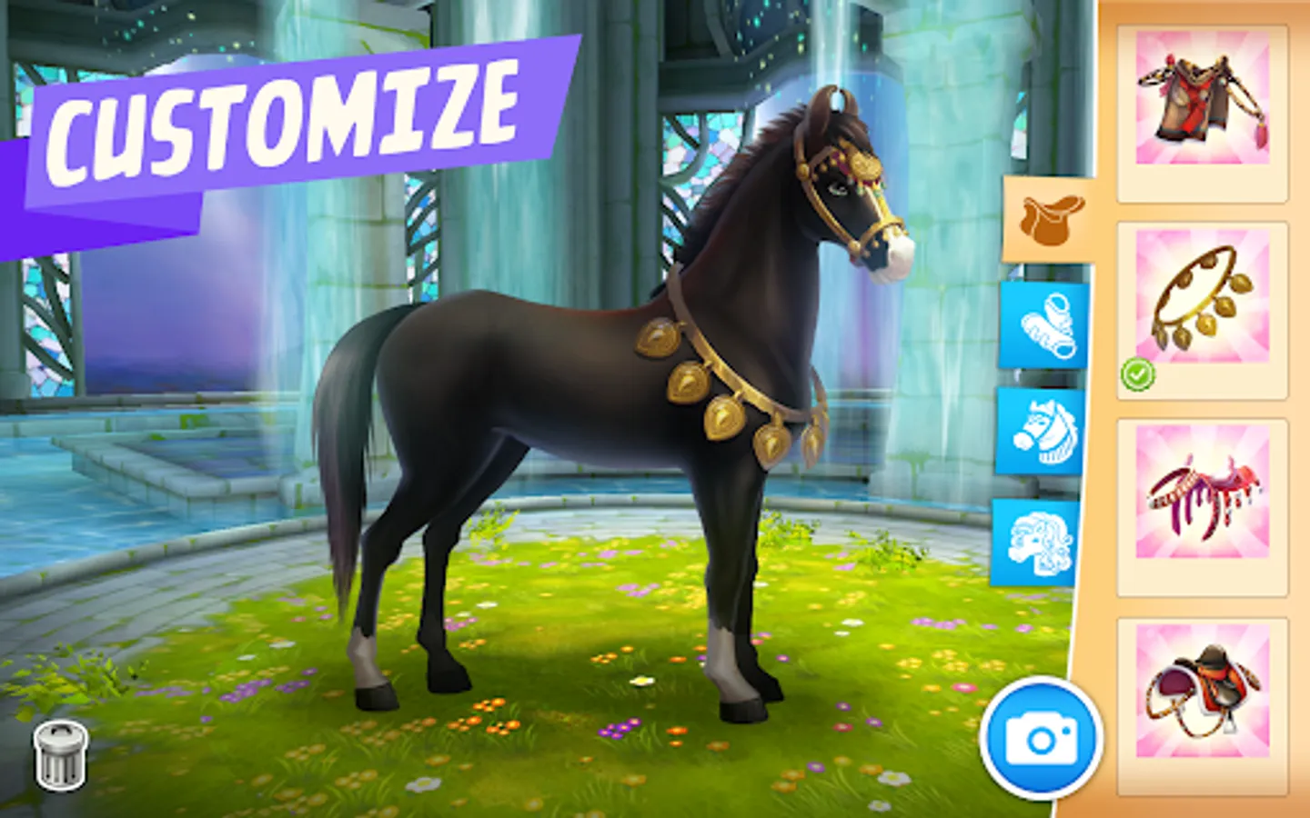 - CUSTOMIZE your horses with stylish saddles and fancy leg wraps.