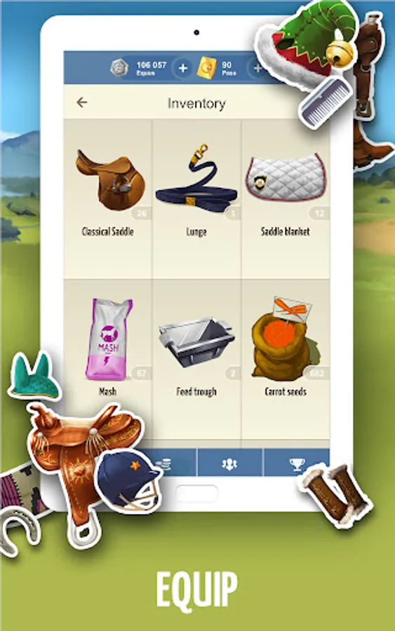 - Equip your horses with various equipment