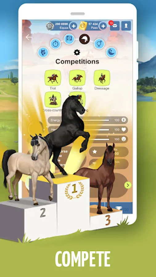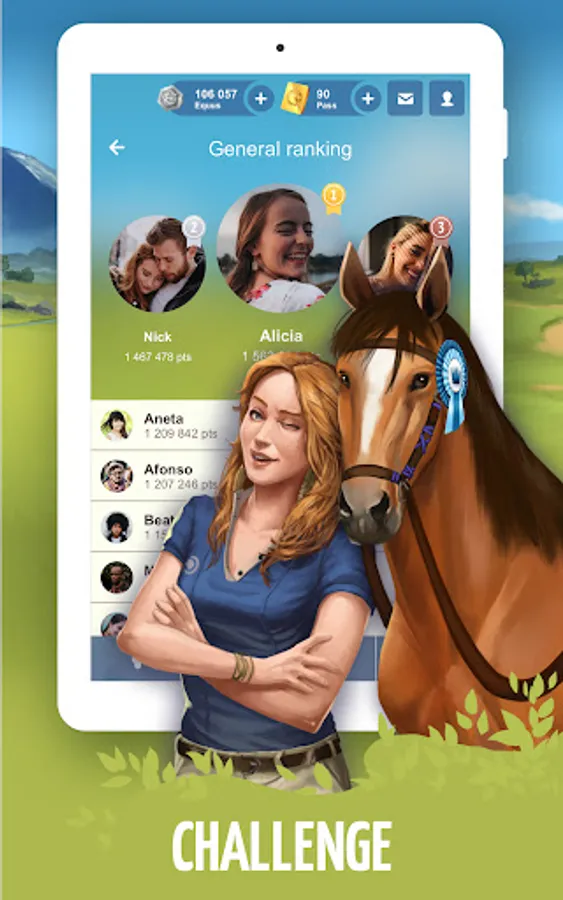 Challenge your friends and the community to reach the top of the leaderboards in the different categories (General ranking, best breeders, best horses, best equestrian centers....).