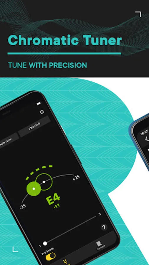 • Use the chromatic tuner to check your intonation and setup a guitar or bass.