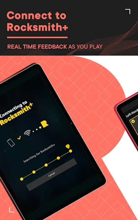 • Connect to Rocksmith+ on PC and use the on-board microphone on your phone or tablet to detect your guitar or bass playing