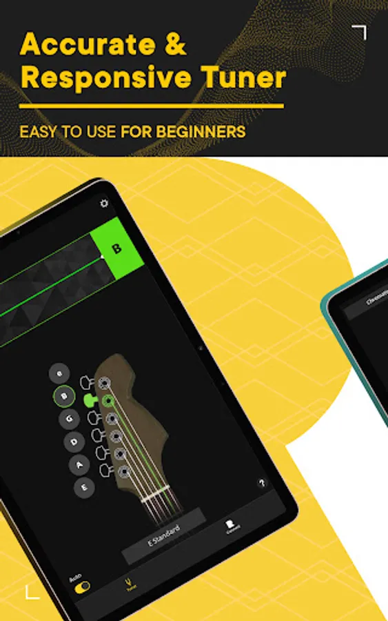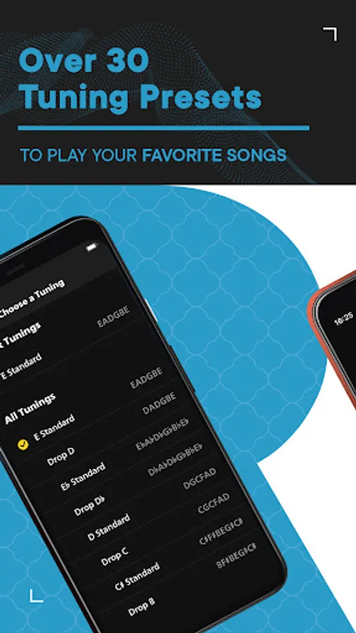 • Audio previews for each string in selected tunings gives a reference to tune towards
