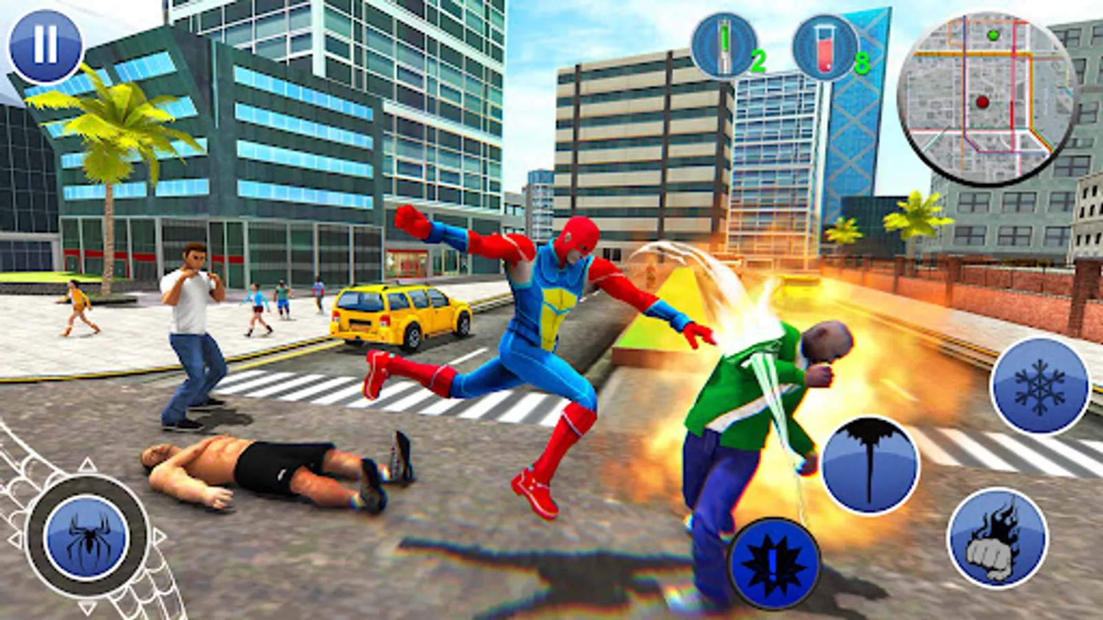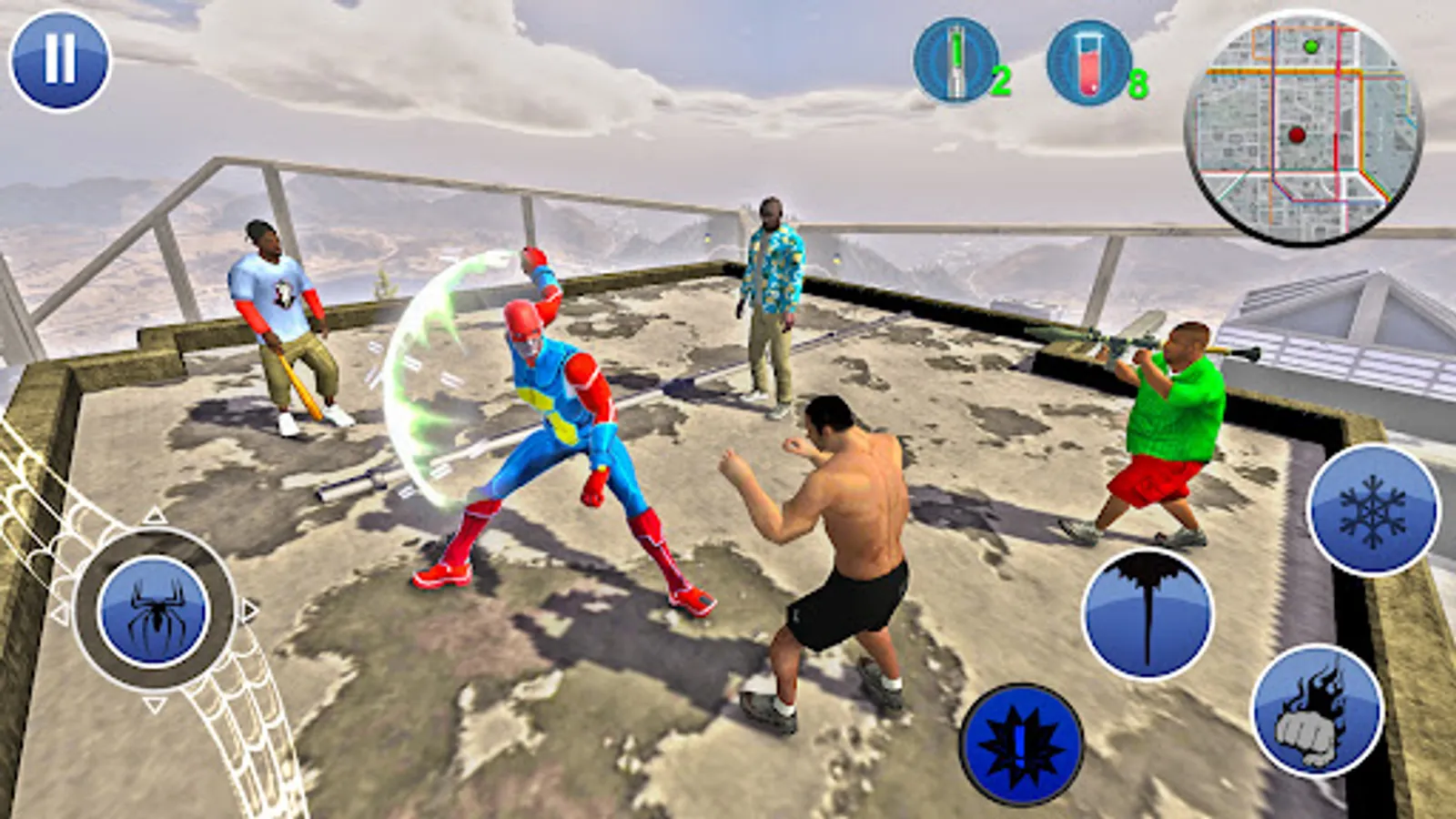 Come play Spider Rope Hero, City Battle and enjoy the first-rate, smooth animations as superheroes swing freely through the Gangster Crime city like never before. Spider Rope Hero Gangster" is an action-packed video game set in the bustling metropolis of New York City and the glamorous streets of Las Vegas. The game follows the story of a vigilante hero who swings through the city on ropes, fighting crime and taking down gangsters.Intense Super Rope Hero action combination-fused mafia crime fighting by shooting webs at bullet firing opponents and punching all your enemies in this cool crime-filled thriller crime simulator game.