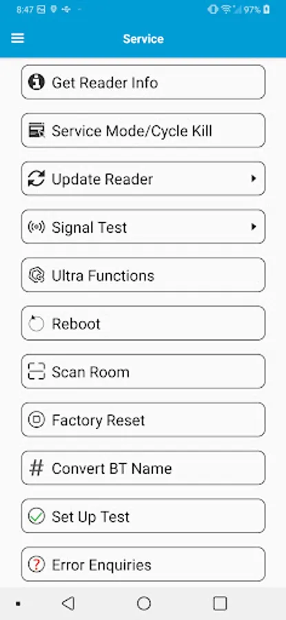 Service: Send some commands to readers via Bluetooth to get the information or do some operations.