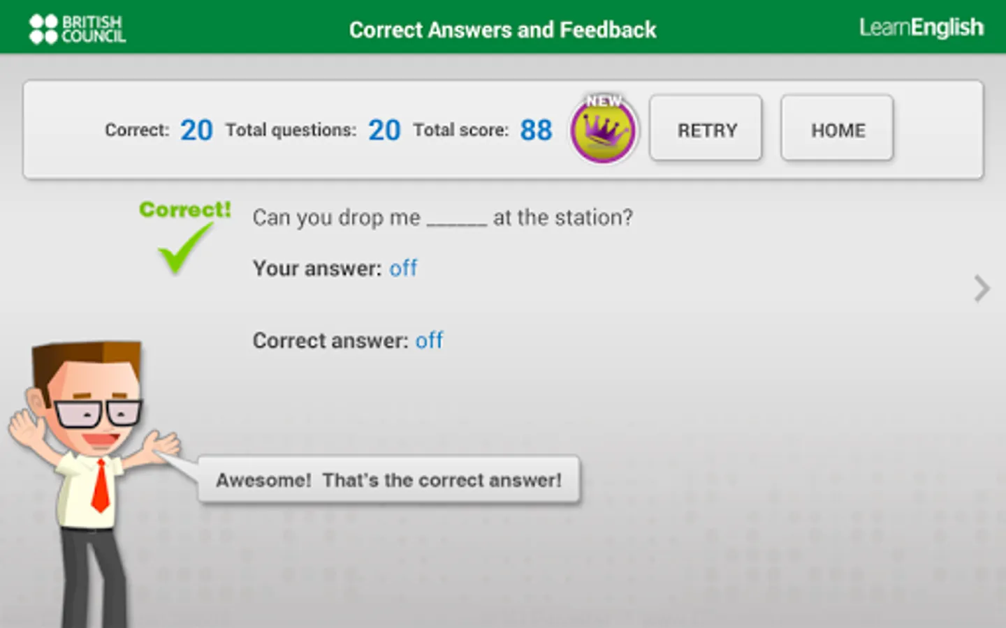 The British Council creates top English learning apps for learners of all ages. You can download our apps to practise grammar, vocabulary and listening. Visit our website to see all our apps www.britishcouncil.org/mobilelearning.