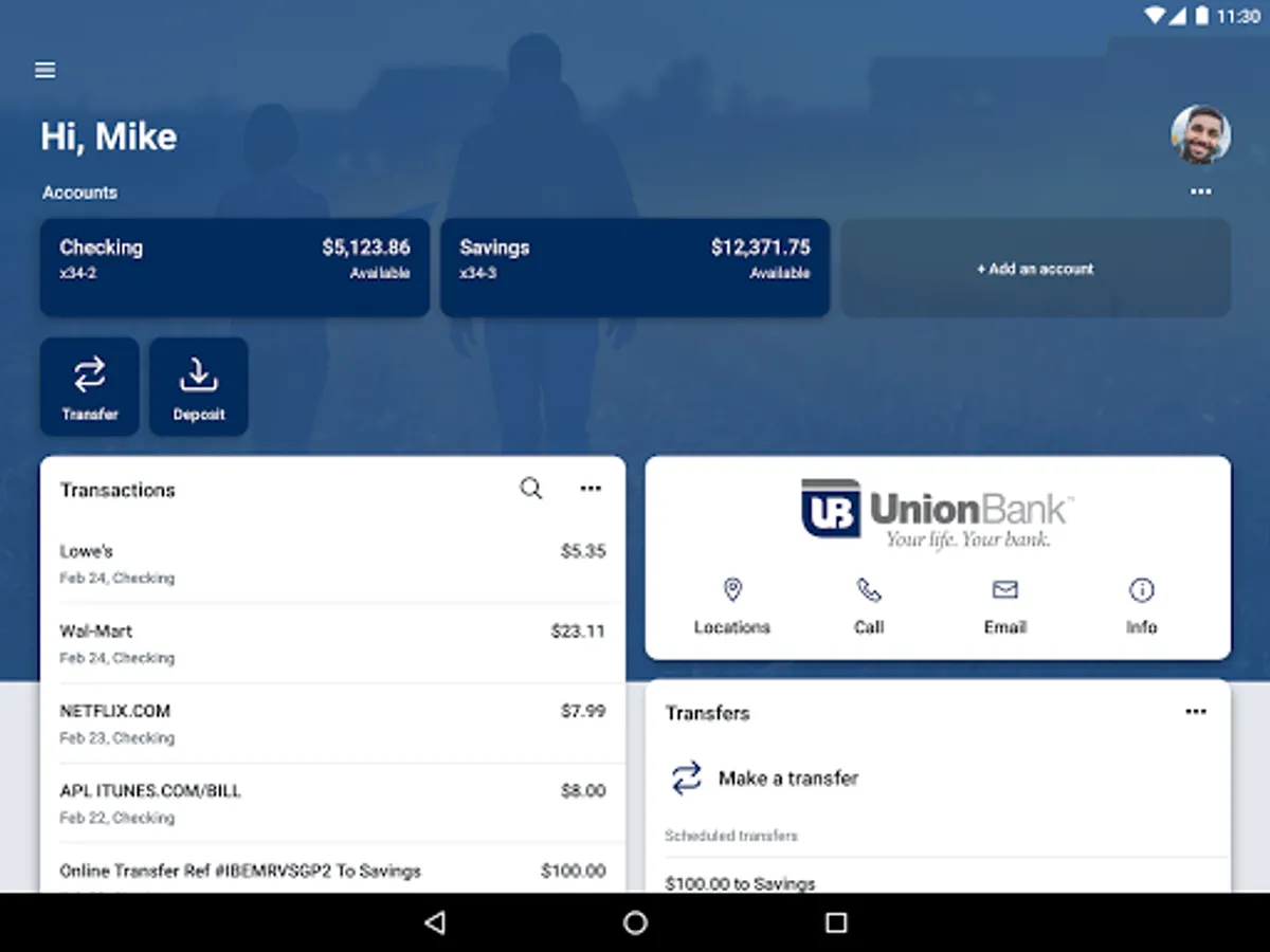 -Deposit checks in a snap by taking a picture of the front and back