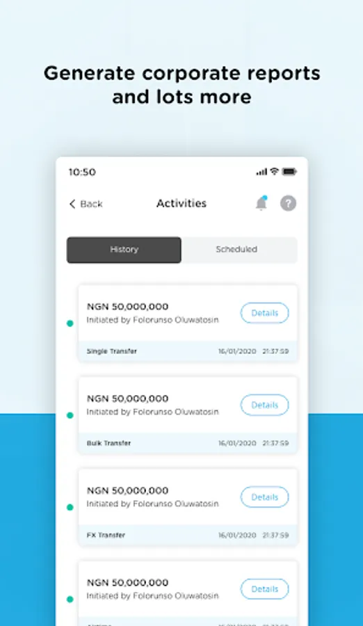 4. View recent activities, i.e., transactions pending, approval history, and transaction history