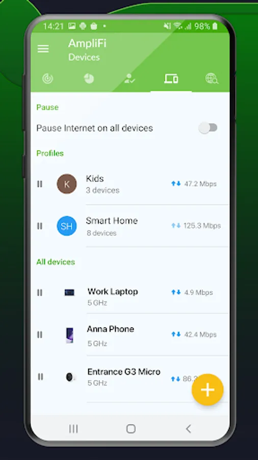 The AmpliFi app offers the simplest way to add, monitor, configure, and upgrade your network. You’ll be able to: