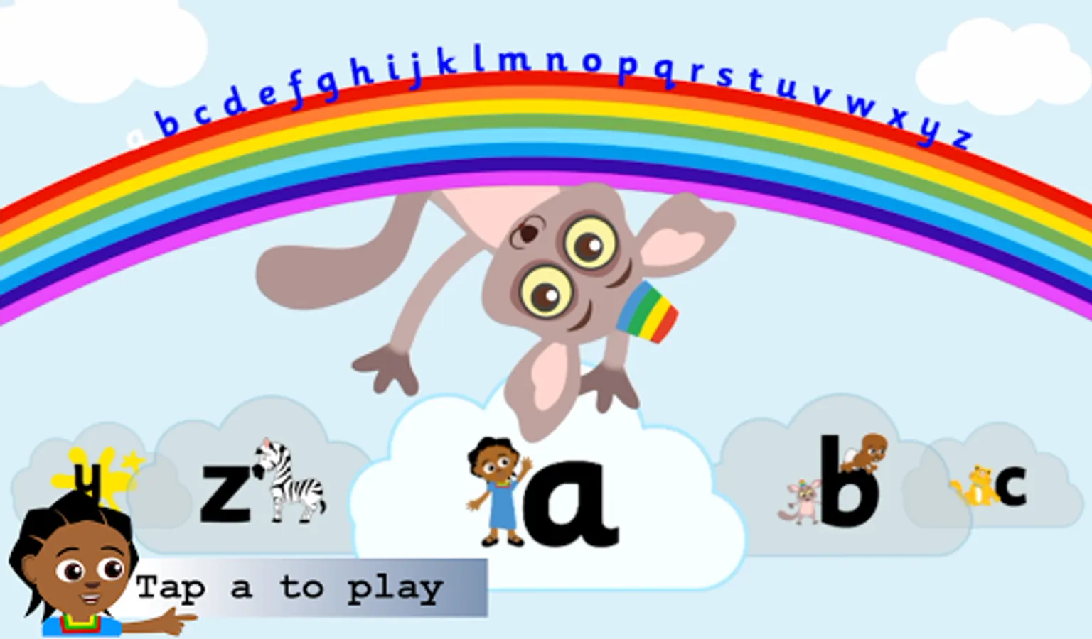 Watch them learn their ABCs as they swipe to match letters with Bush Baby, Happy Hippo and Little Lion!