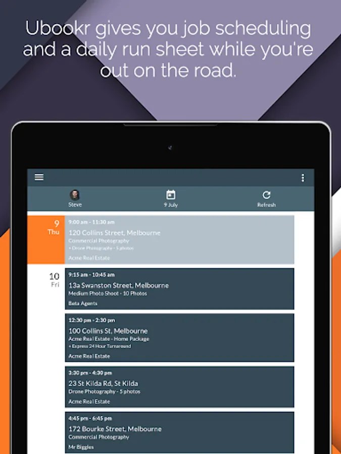 MAKE LIVE JOB BOOKINGS - Whether you're a real estate photographer or a real estate agent customer you'll be able to make live bookings into available time slots.