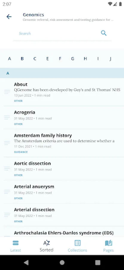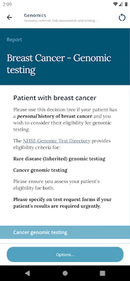 The application allows users to access up to date clinical guidance, at the ‘point of care’, and delivers a time-efficient mechanism to instigate genomic evaluation and onward referrals, where necessary.