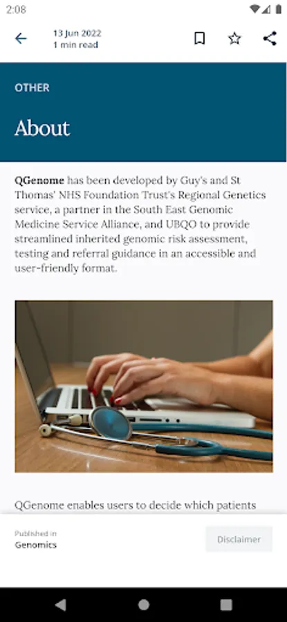 QGenome has been developed by Guy's and St Thomas' NHS Foundation Trust's Regional Genetics service, a partner in the South East Genomic Medicine Service Alliance, and UBQO to provide streamlined inherited genomic risk assessment, testing and referral guidance in an accessible and user-friendly format.
