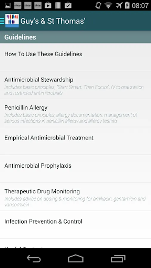 The application makes it easy to access antimicrobial prescribing guidelines to treat a wide variety of common infectious diseases and prophylaxis guidelines for various procedures and conditions. Underpinning the application is out commitment to improving antimicrobial stewardship for our patients.