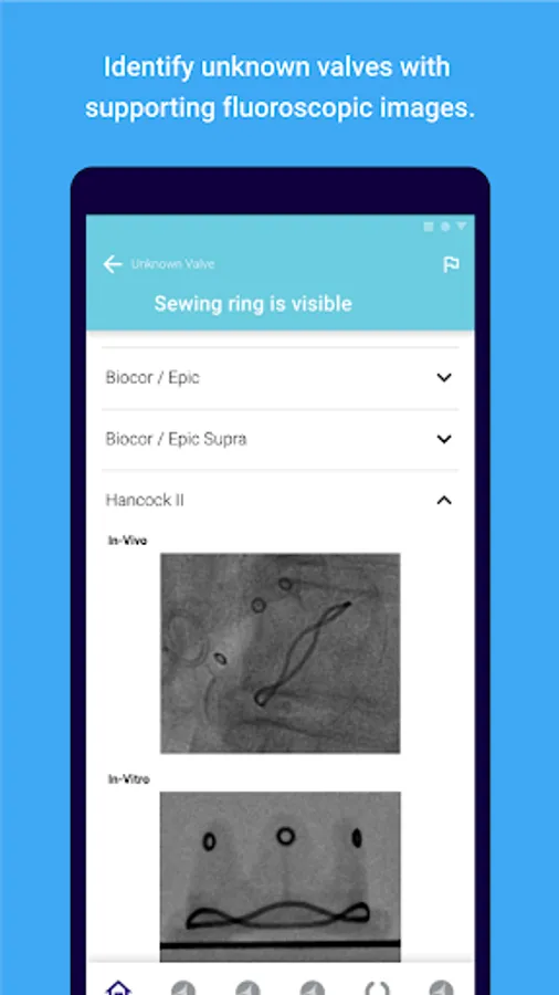 If the valve type is unknown, the App also guides the user through a series of steps where they can identify the surgical valve type and then use the information available for it.