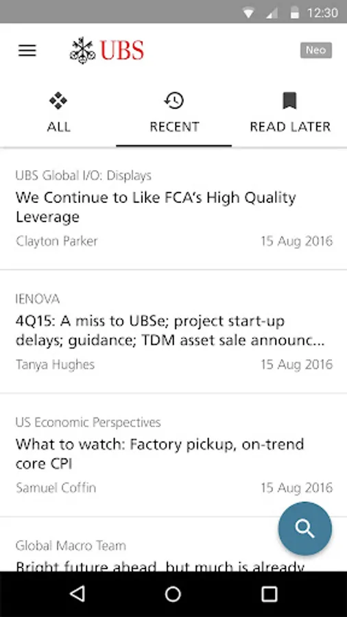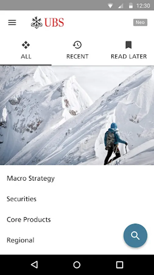 UBS Neo is your personal network of real-time market intelligence that you can control and trade on. UBS Neo brings you the best of UBS’ Investment Bank — our people, our content, and our trading services. The UBS Neo Research App provides institutional clients instant access to UBS’s Investment Bank Research anytime, anywhere.