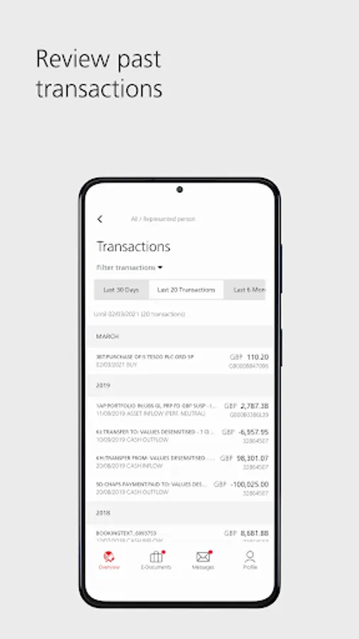• Assets: track the market value of your portfolios and custody accounts, view positions and resent transactions