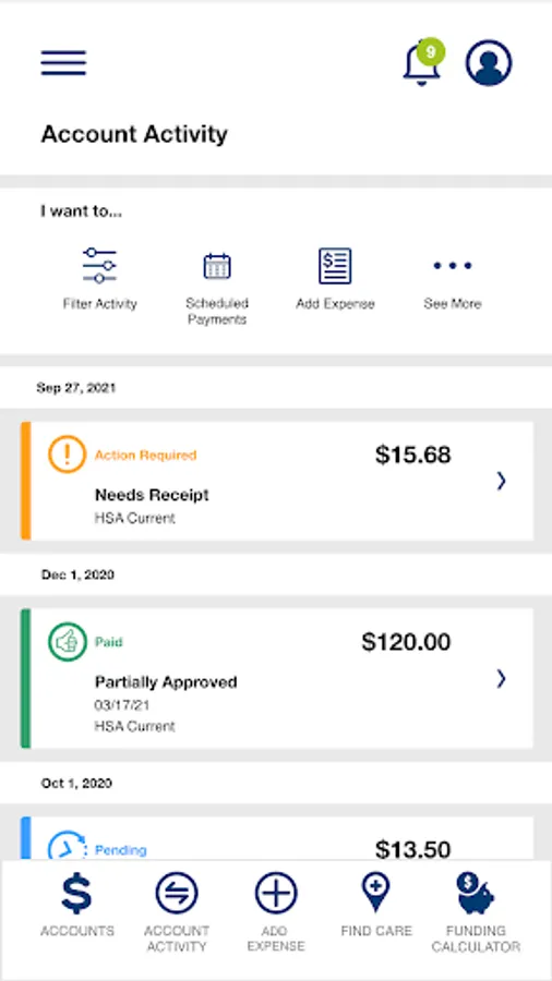 • Health Savings Account balances and details