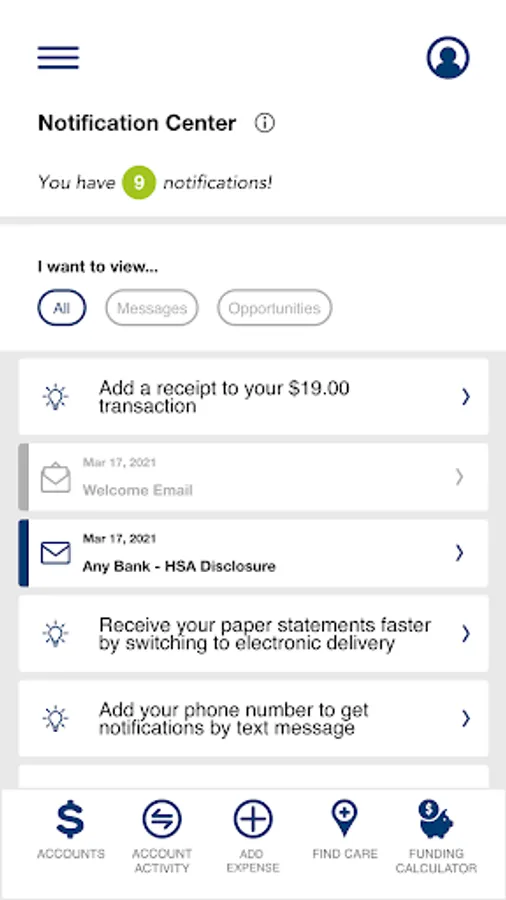 • Ability to fund HSA deposit account from checking/savings accounts