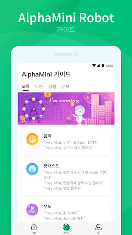 AlphaMini Robot is UBTECH's humanoid artificial intelligence robot. It includes a wealth of educational content and entertainment, and offers a variety of services including dance, video calling, coding, object recognition, etc. The “AlphaMini Robot” APP can manage your AlphaMini Robot and support the following features:
