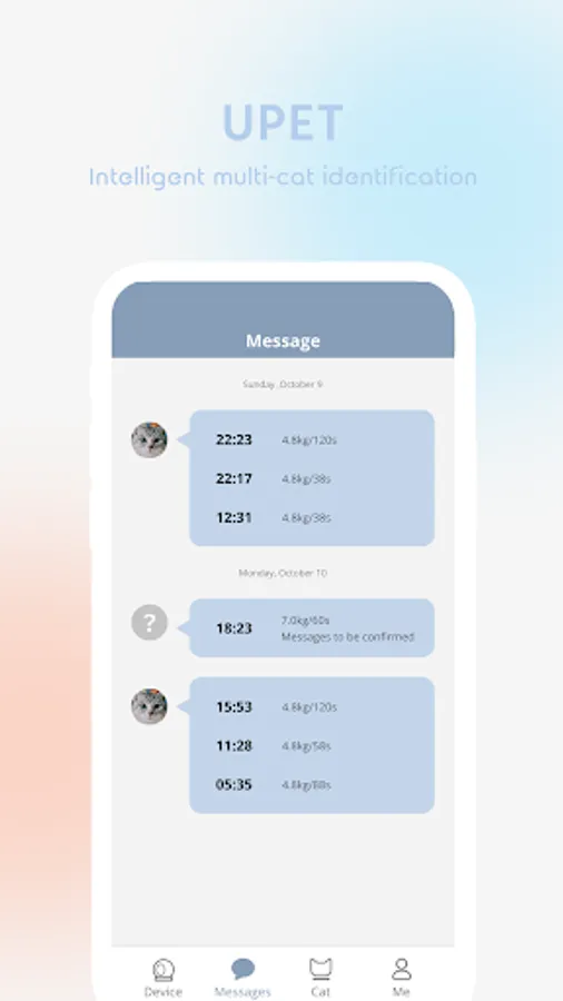 [Health data management] Monitor cats' weight and toileting time around the clock, periodic data push, combined with multi-cat identification, make the cat's toileting health data management more accurate, just open the APP, you can instantly understand the cat's toileting health situation.