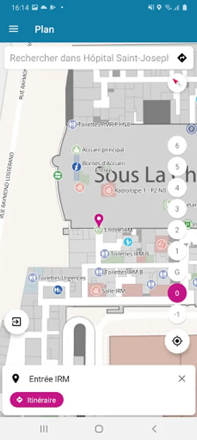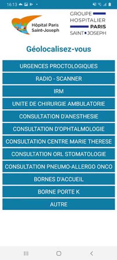 The Paris Saint-Joseph Hospital has set up a mobile application called Géoloc Saint Jo, allowing patients and visitors to the Paris Saint Joseph hospital city the following functionalities:
