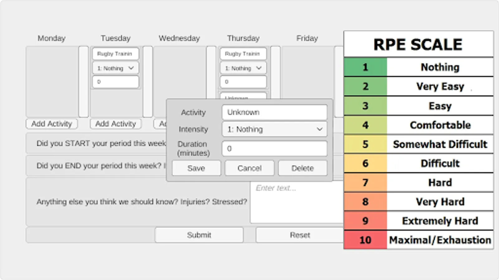An RPE Questionnaire for the UC Study on Injury in Exercise