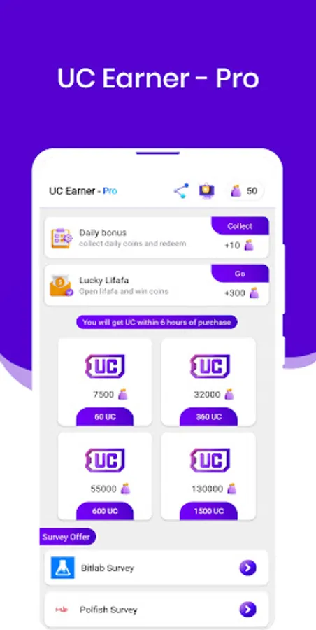 UC Earner - Pro App is the easiest way to earn UC coins to use them to buy cool items in the game. Everything is simple. You complete