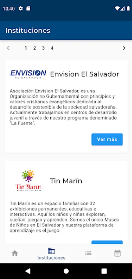 Informative application on the UCA Solidarity Fair. Shows the participating institutions of this event.