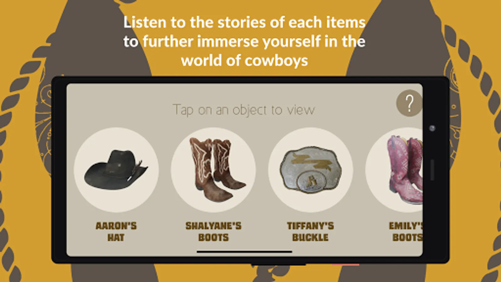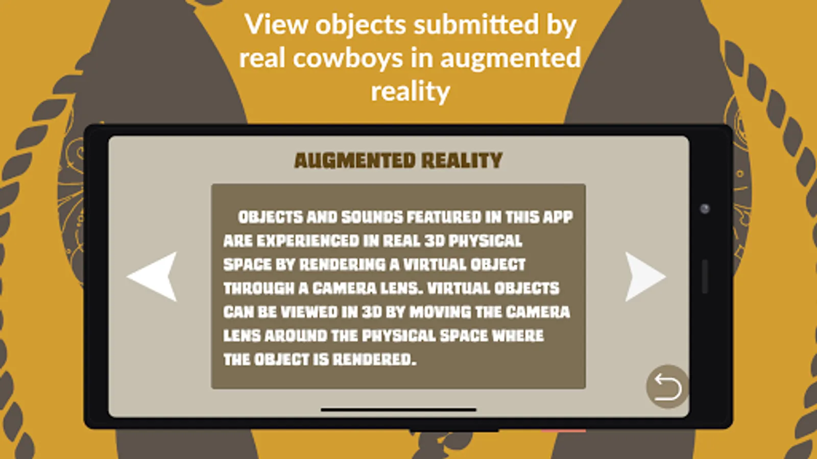 Real Life Cowboy is the only app that lets you view objects submitted by real cowboys in augmented reality. Learn about significant cowboy-related objects while viewing and listening to them in your own environment. You can even interact with the objects by moving them in space.