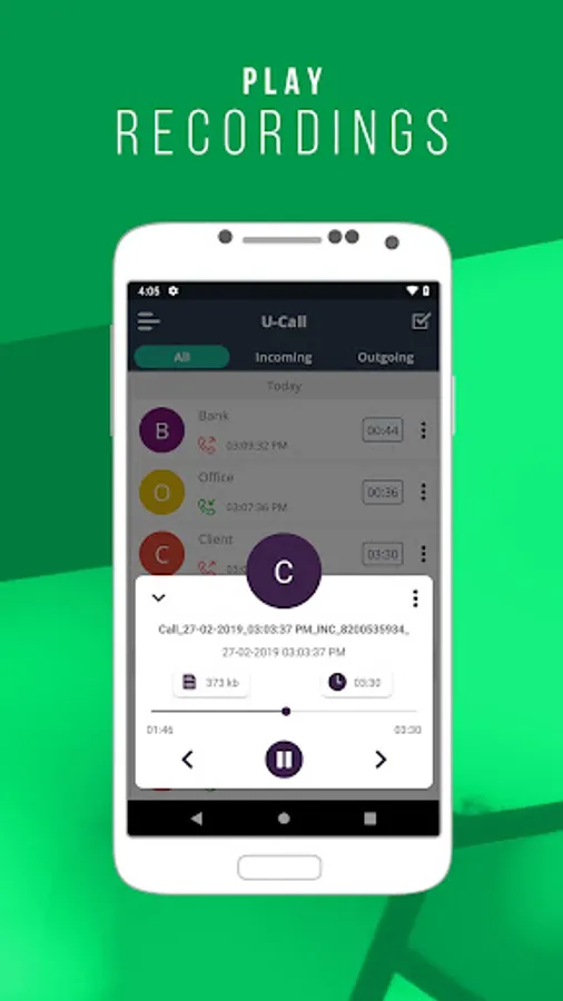 Ucall offers a unique set of features which will allow you to record any call automatically. It is one of the best call recorders in the Play Store. Record any phone call you want and choose which calls you to want to share other people by any social media. Listen to the recording, add notes and share it.