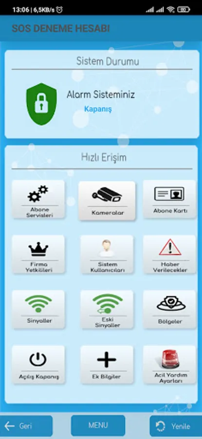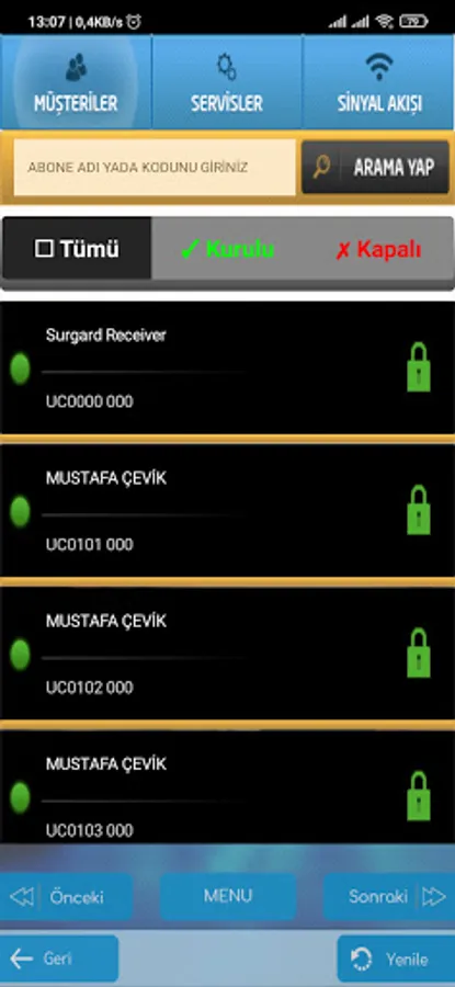 Uçar Security Alarm Signal Tracking application is the application where the subscribers of the Alarm Control Center can see the status of the alarm systems (whether the alarm system is installed or not) and the 30 signals coming to the alarm center.