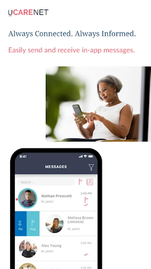 Connect anytime, anywhere. Chat with your caregiver or share photos in real-time with instant messaging.