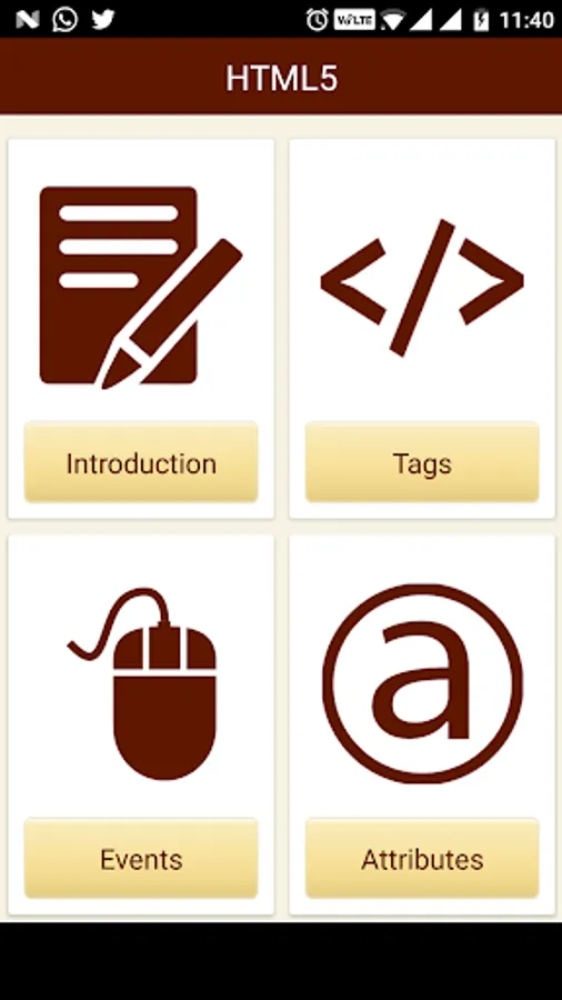 The HTML tags are broken into the following categories: