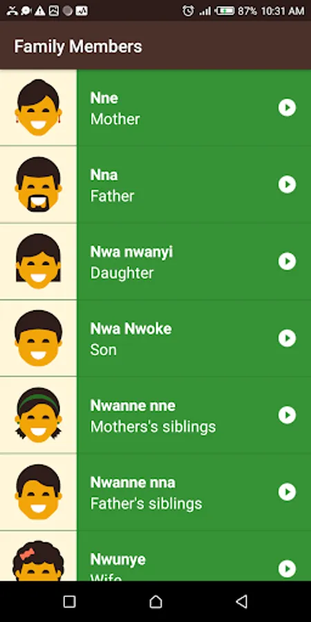 This application aids in the learning of Igbo language. It contains voice notes and Igbo words with helps the learning process.