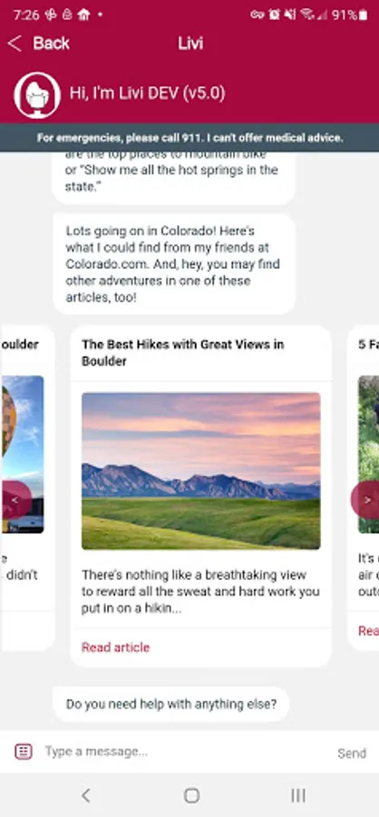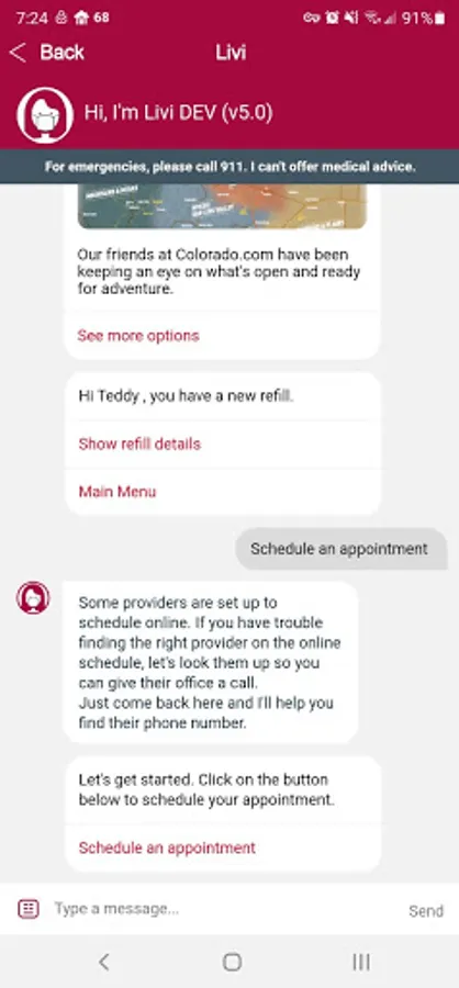 Ask Livi, our UCHealth virtual assistant, to help you out with any task listed above. Ask her things like, “show my test results," "when is my appointment?," "get me information on Virtual Visits" or even “find me something fun to do this weekend.”