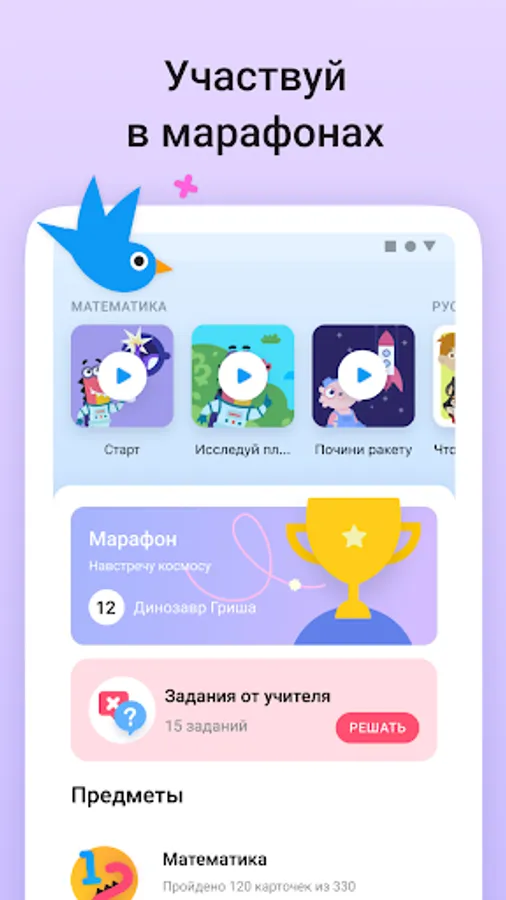 Educational platform # 1 in Russia * - now on smartphones! Your child will love to learn: funny characters explain complex topics, and a smart system offers a comfortable learning path. Regular classes on Uchi.ru increase academic performance by 30% **.
