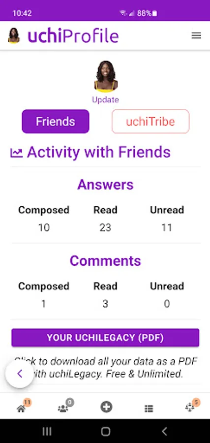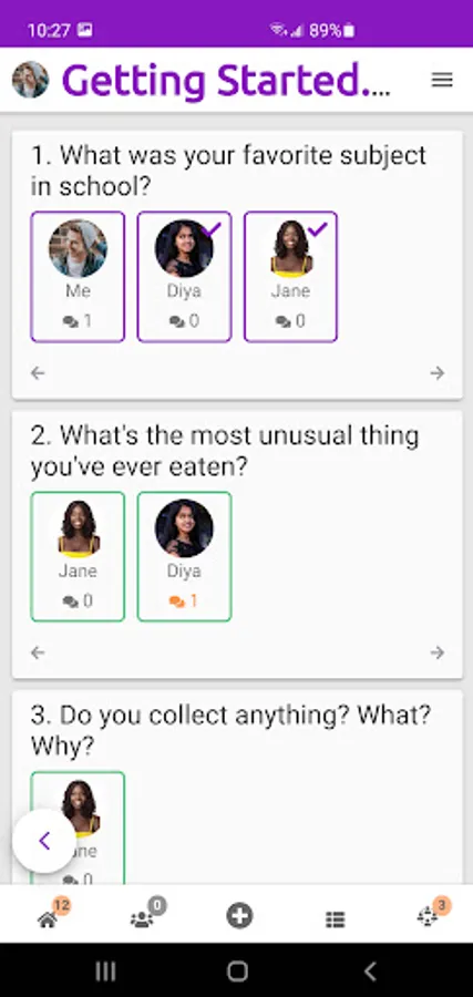 DISCOVER - You may pick a question and think, “I wonder how mom would answer this one?’” or “What did my best friend Sally say?”. Well, if in your Uchi, you’ll have access to Sally’s response, but only AFTER you answer that same question. The rule is your friends’ responses “unlock” only after you share too. Uchi is a “two-way street”.