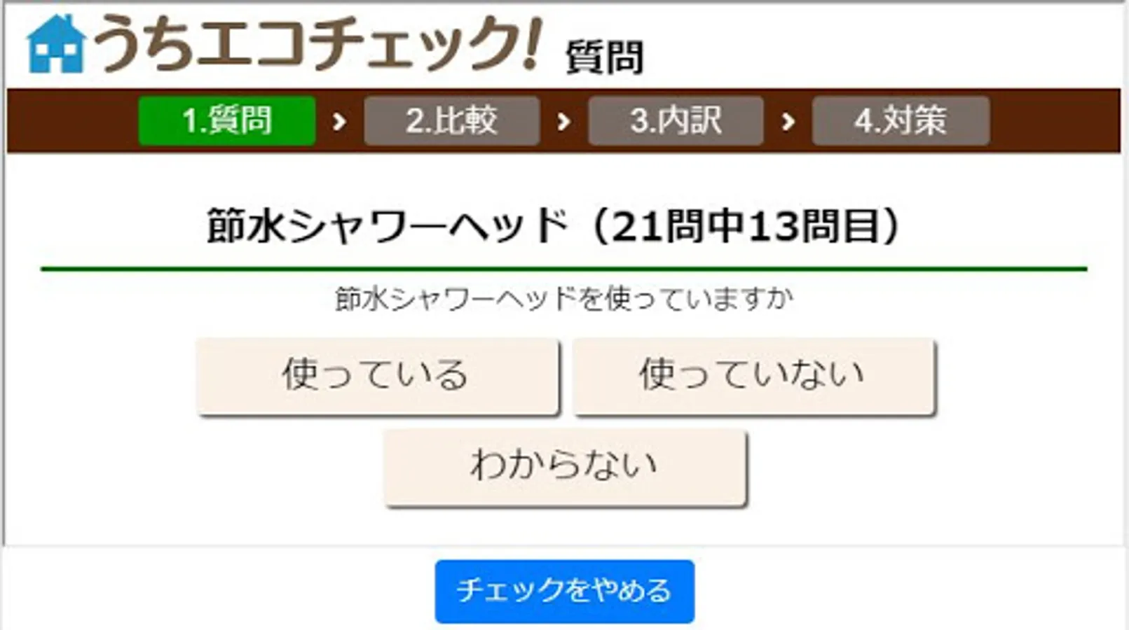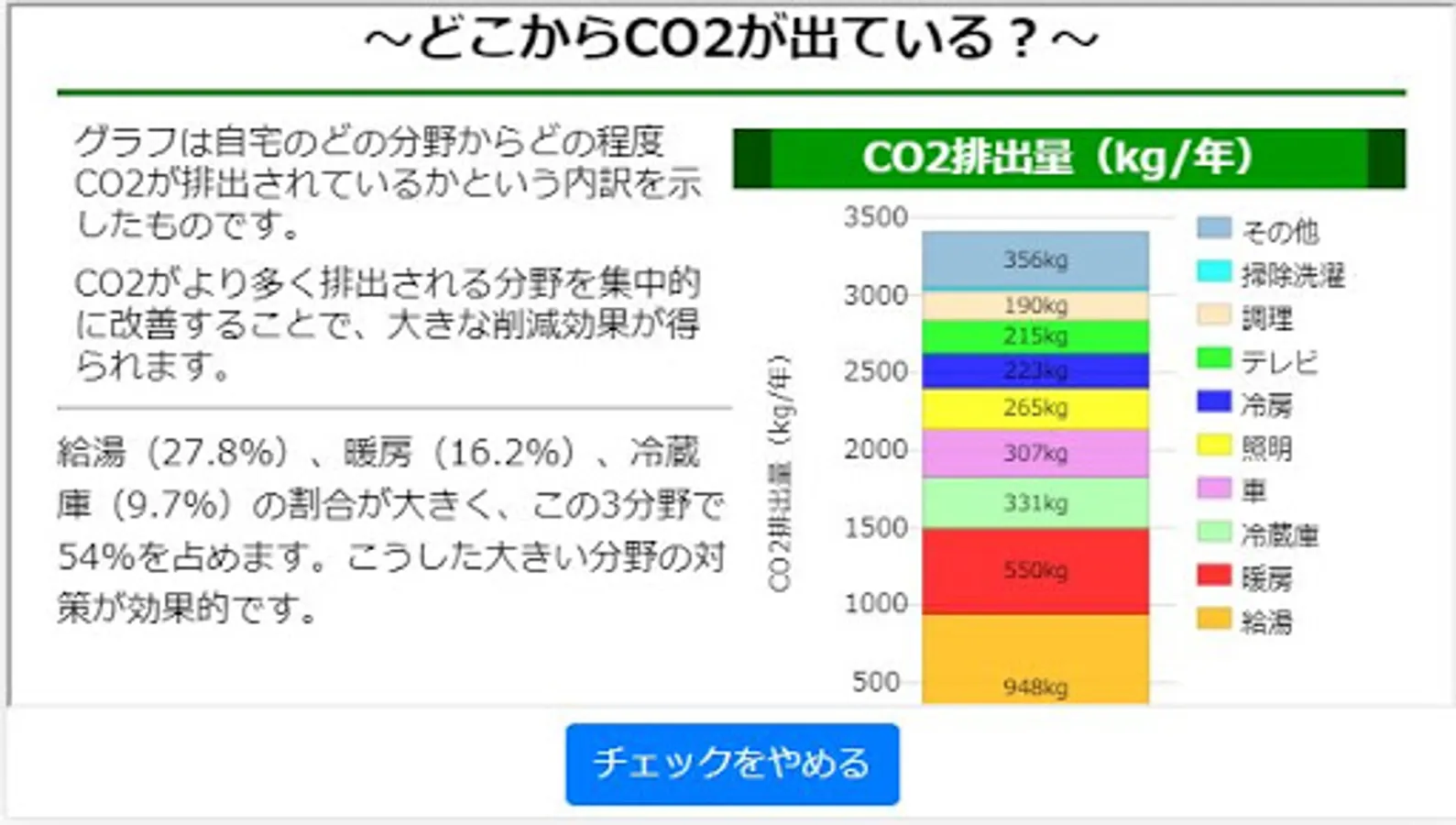 "Uchi Eco Check" applies the basic logic of eco-diagnosis implemented by the Ministry of the Environment, and calculates effective global warming countermeasures at home by inputting how to live and how to use equipment. I can.