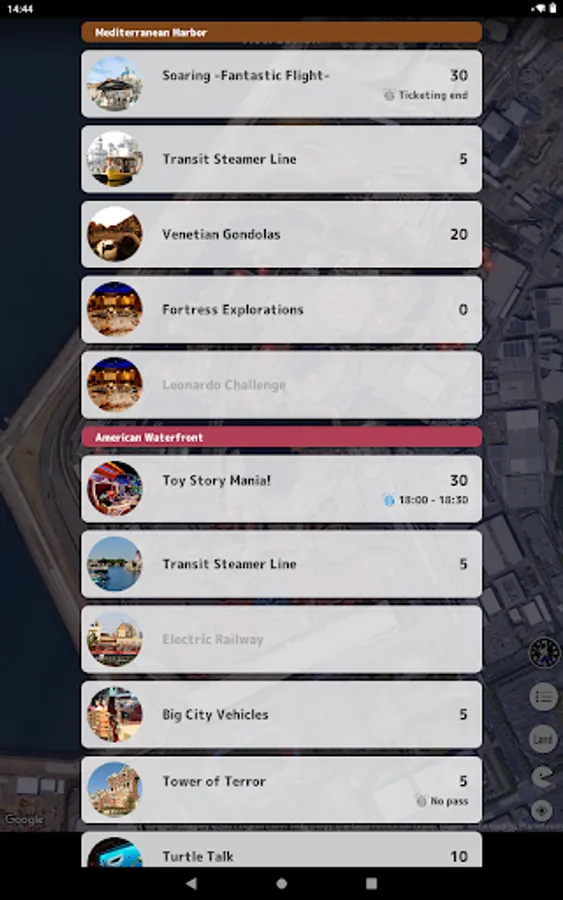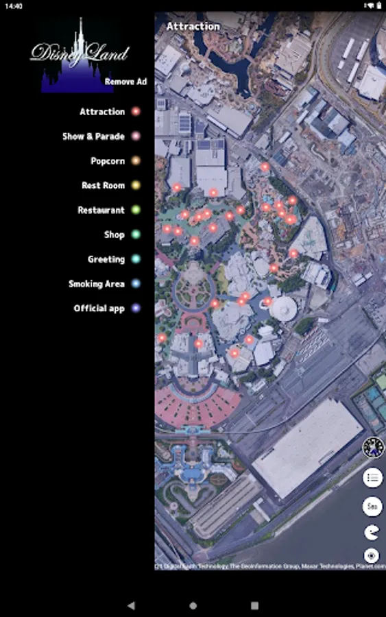 You can check Attraction's waiting time, Show & Parade info, Restaurant, Shop, Restroom or so on Map!