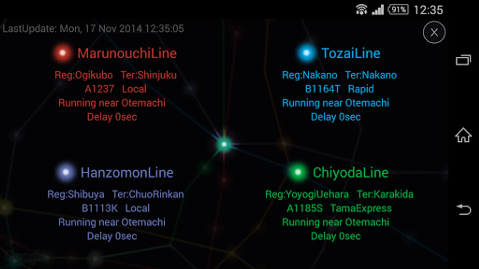 All of the train who are busily engaged the whole area of Tokyo Metro and appears as a light blinking on the route map.