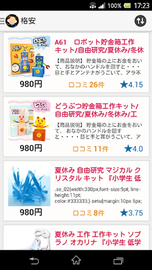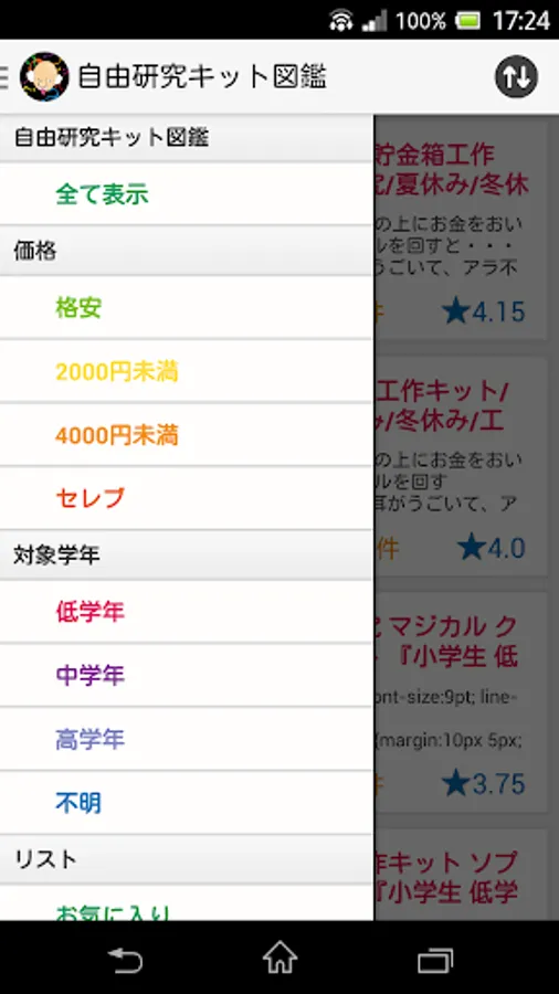 ネットショッピングで購入できる夏休みの自由研究キットの一覧アプリです。